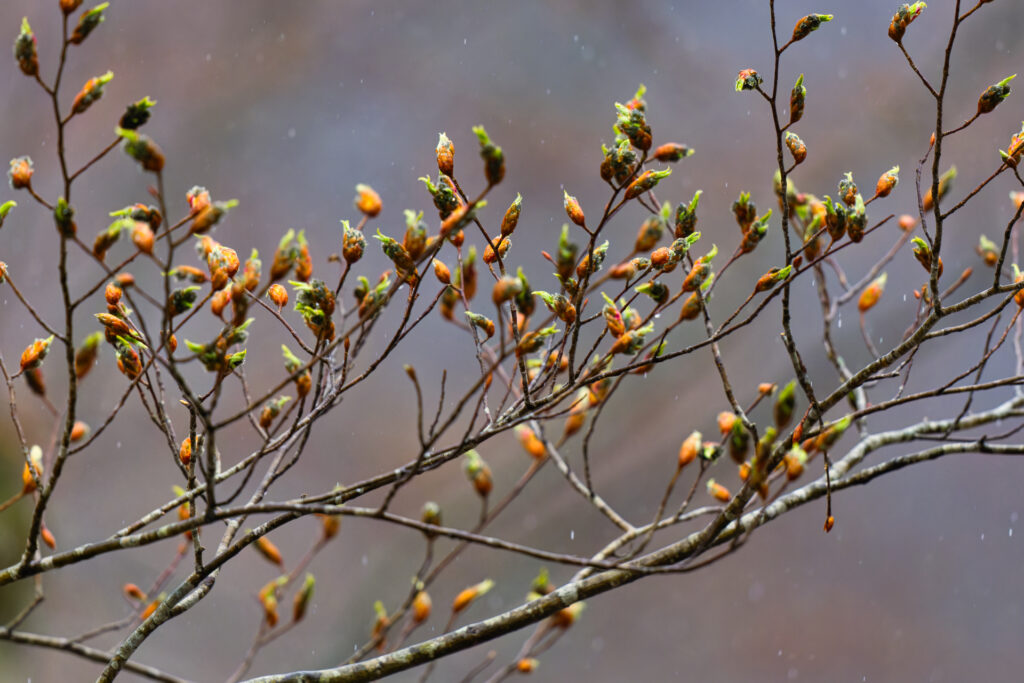 地元の山ではブナが芽吹き間近でした。残雪のなかでも木々の生命の力強さを感じました。