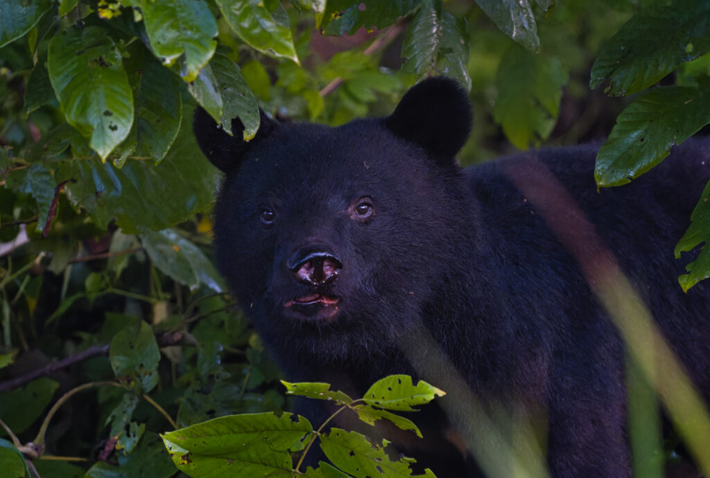 朝方のクマ撮影は「暗がり+真っ黒な被写体」で苦慮しております。ミラーレスカメラになって被写体認識に頼れる状況になってはきましたが、原始的なMFでのピント合わせが数秒しかチャンスしか与えられないクマとの遭遇・撮影においては有効という状況です。