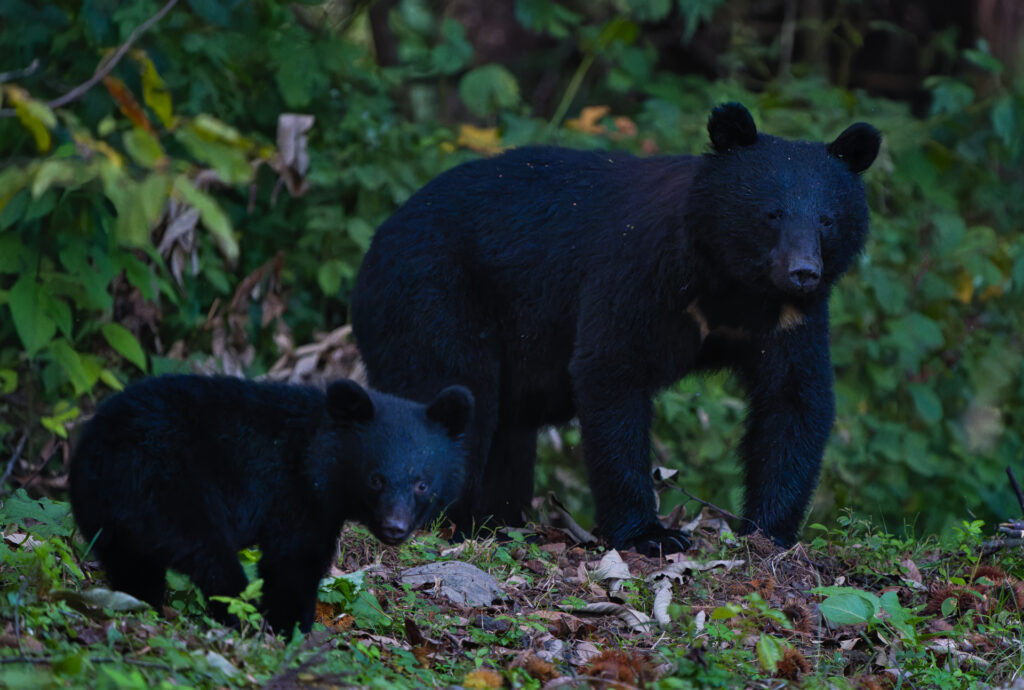 今年はお盆前まではクマの姿を時折見かける程度でした。ところが、お盆を過ぎた後、どこにいたんだ、と思うくらい親子クマを目撃するようになりました。今冬の出産でたくさんのクマが生まれていたようです。