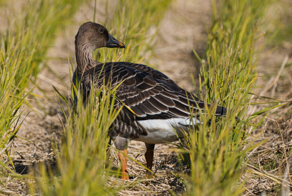 ガンの仲間のヒシクイですね。冬になると農耕地などで観察できます。