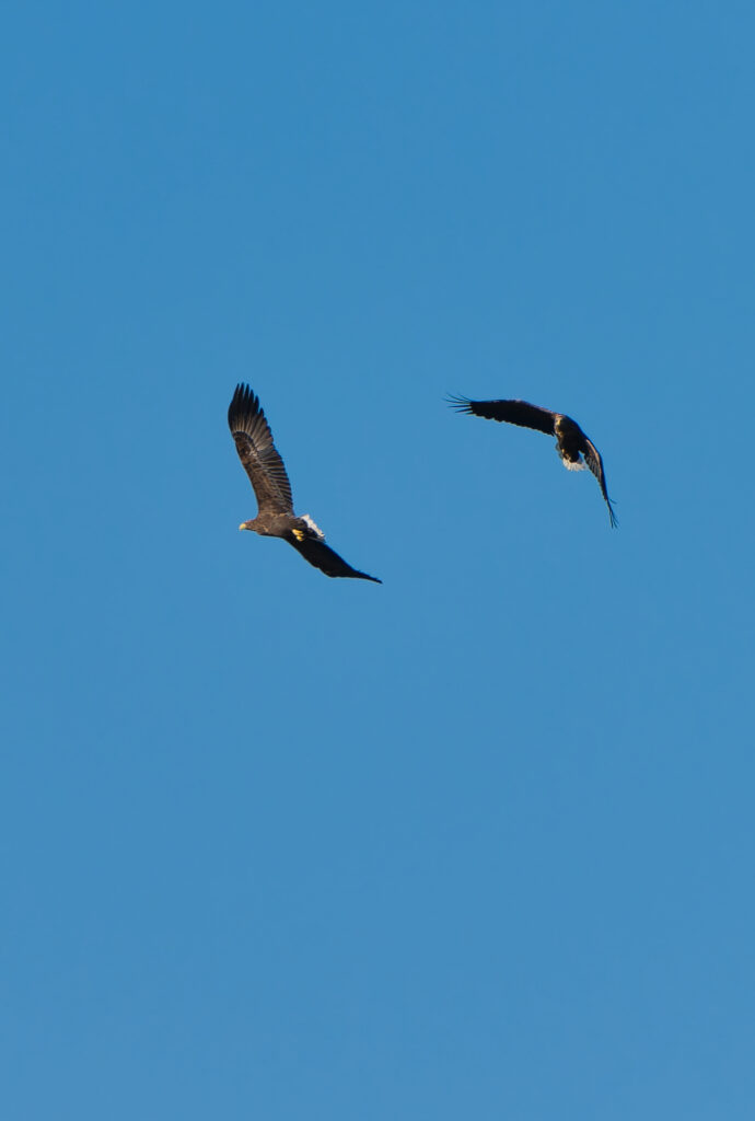 2羽のオジロワシが空中で一触即発の状況に見ているこちらがヒヤヒヤさせられました。