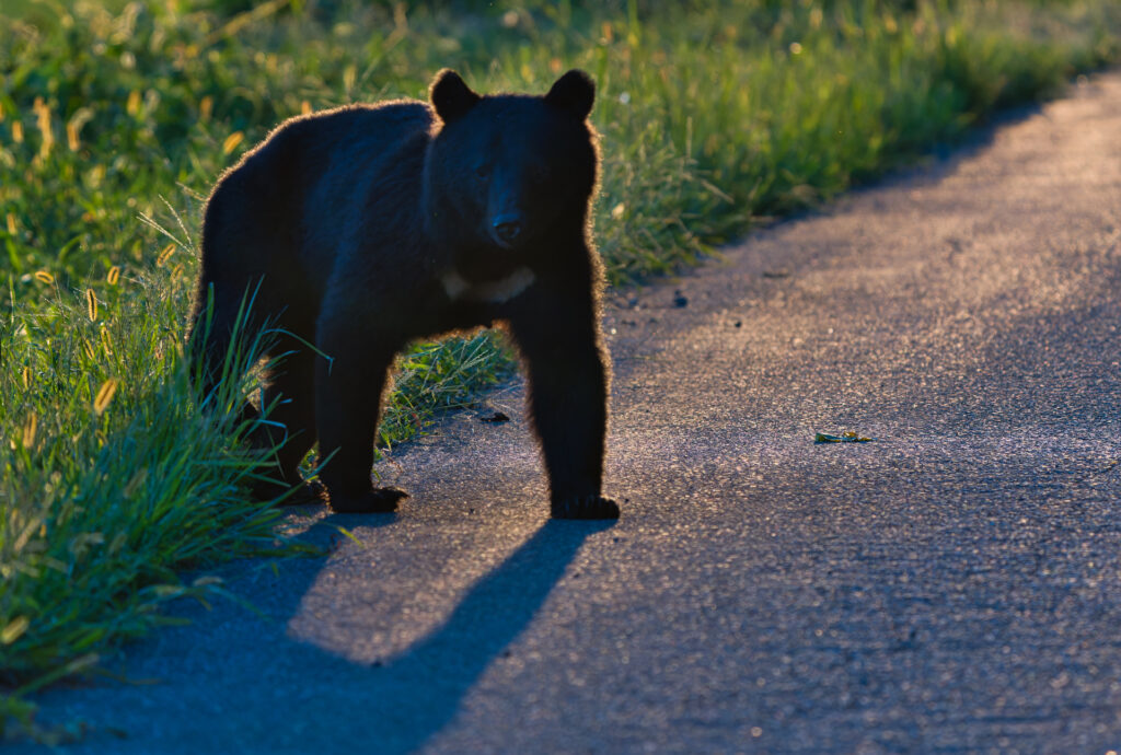 日の出・日の入りは薄暗く、街灯が設置されたところでは多少明るいものの、影の濃い場所は暗く、視界が良好とは言い難いです。クマの体毛は黒色で暗闇の中で動いていても、気づきにくいです。これを利用してクマが黎明薄暮に行動しているのかはわかりませんが、暗がりに乗じて移動することのメリットを理解しているような気もします。