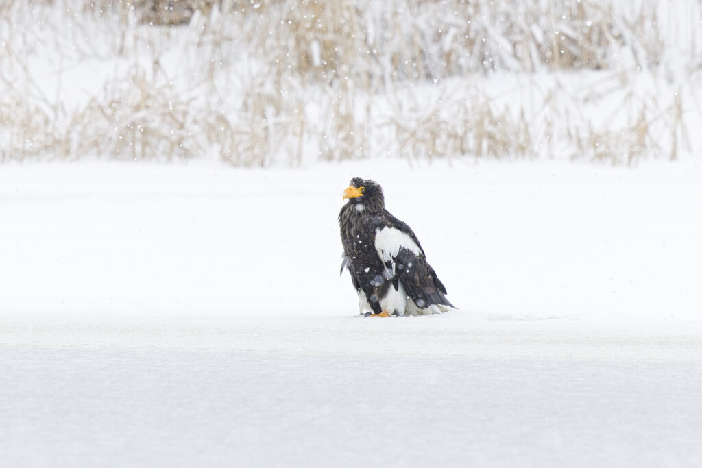 雪中のワシ撮影
