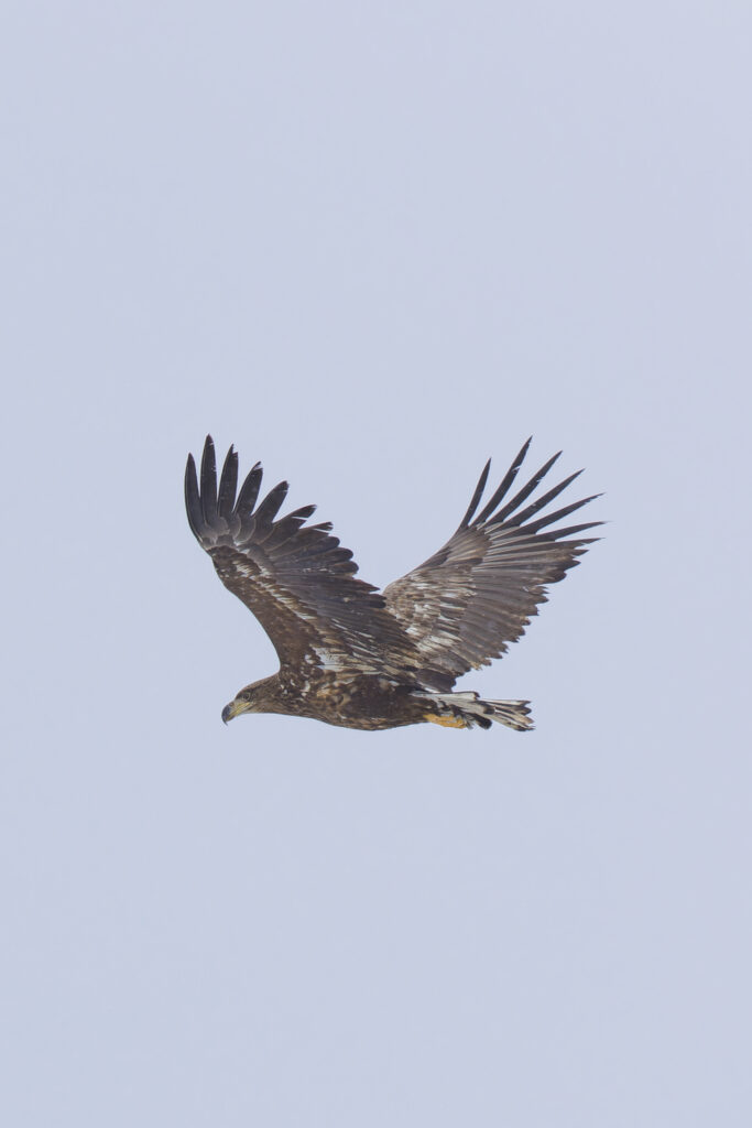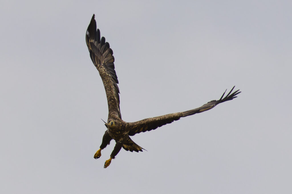オジロワシの亜成鳥が近くを飛んでくれました。