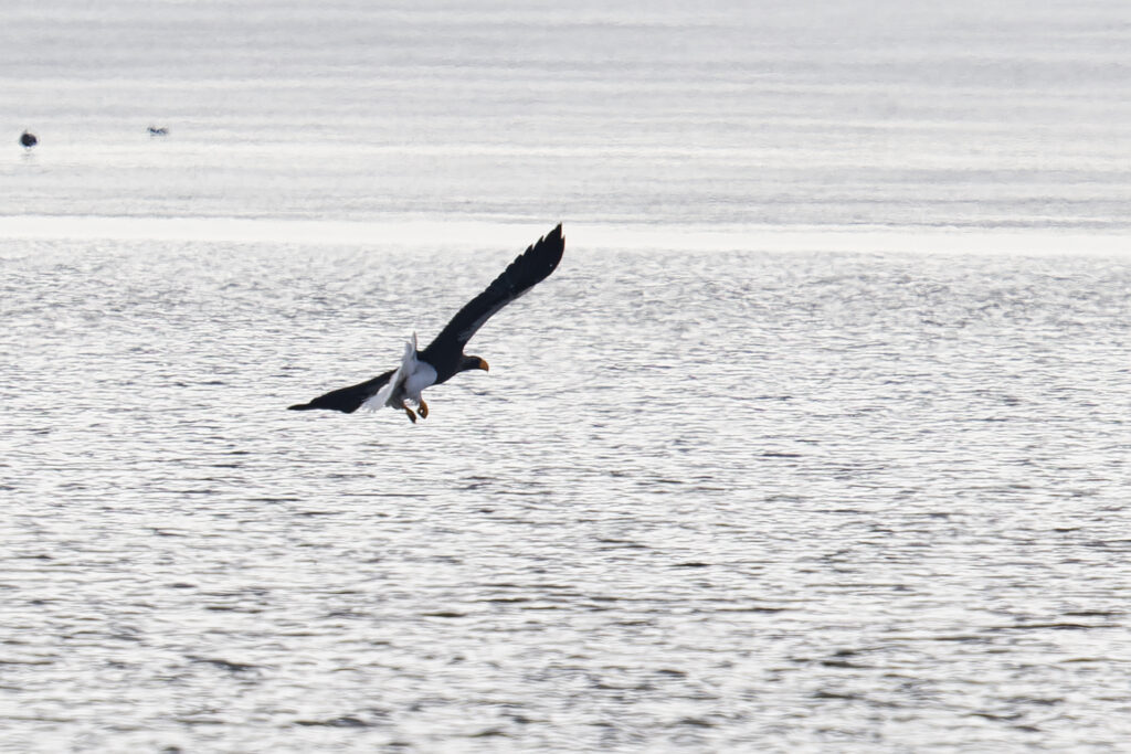 たまたまオオワシの狩りの瞬間を捉えることができました。